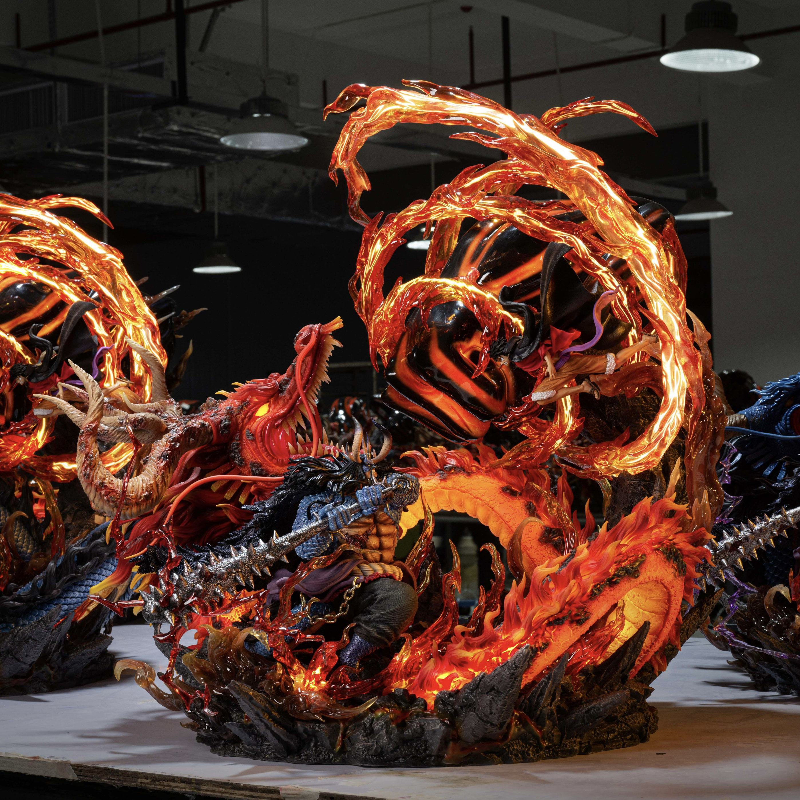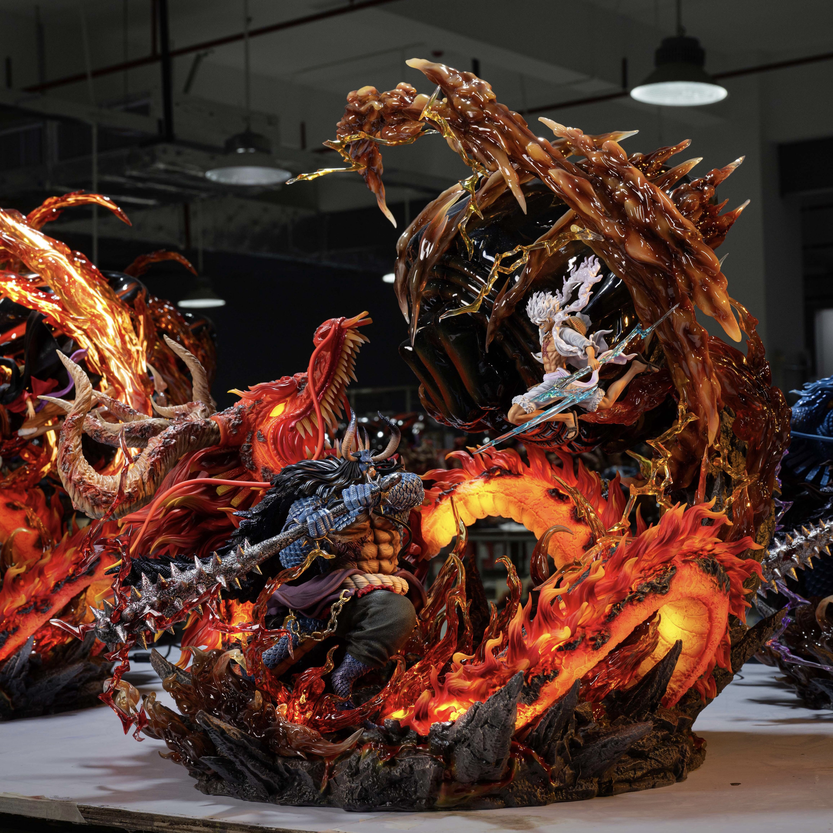 [Full Payment] Illuminated One Piece Heavy Armored Fire Dragon Kaido VS Nikka Luffy Figure Model Statue Ornament