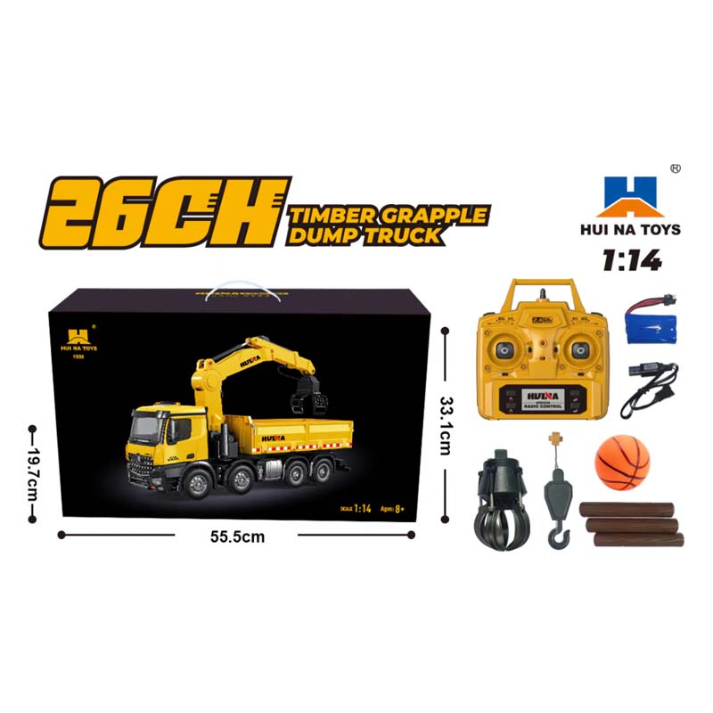 HUINA 1538 RC Timber Grab Truck - Remote Control Log Loader / Forestry Grapple Construction Vehicle with Lights