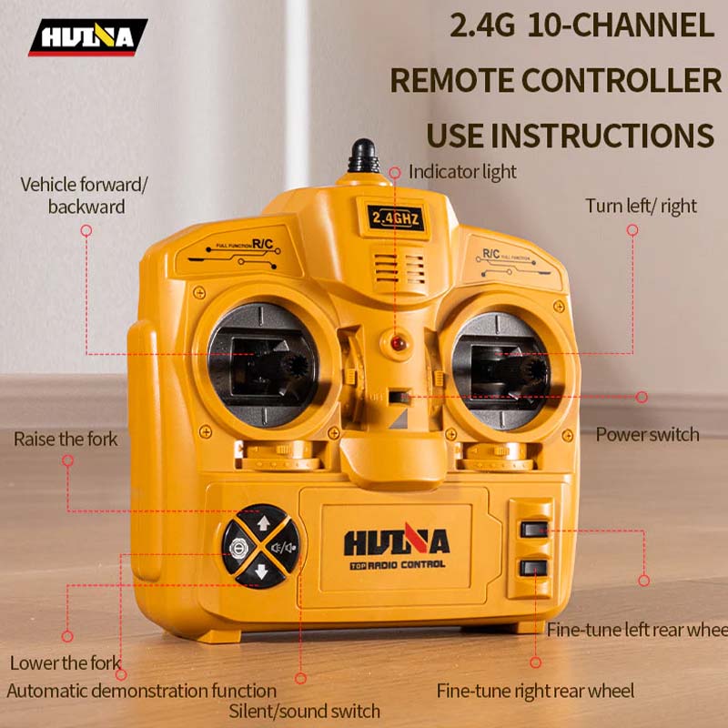Huina 1577 1/10 Scale RC Forklift 8-Channel Semi-Alloy Remote Control Flatbed Truck with Lifting Arm & Metal Fork RTR