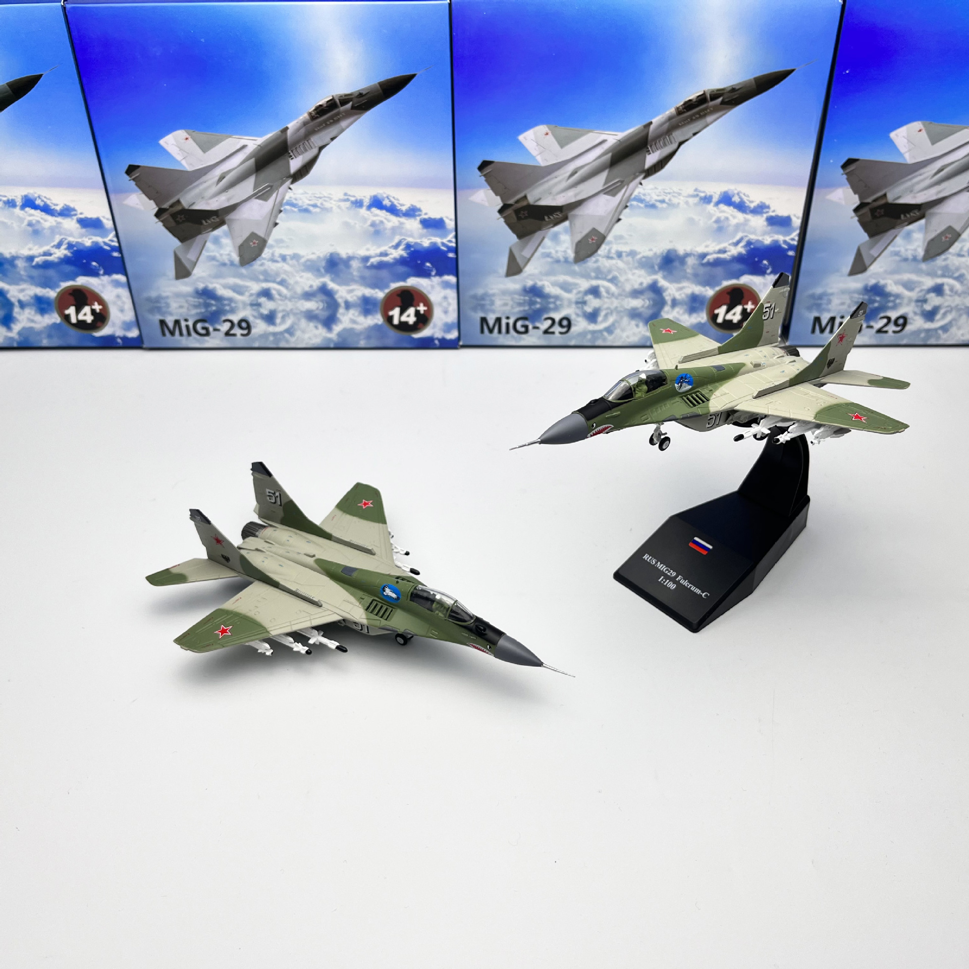 1/100 Scale Russian MiG-29 Pivot Military Fighter Aircraft Model Toy Display Piece