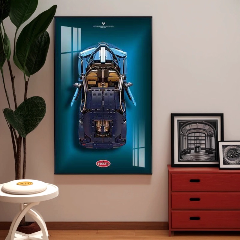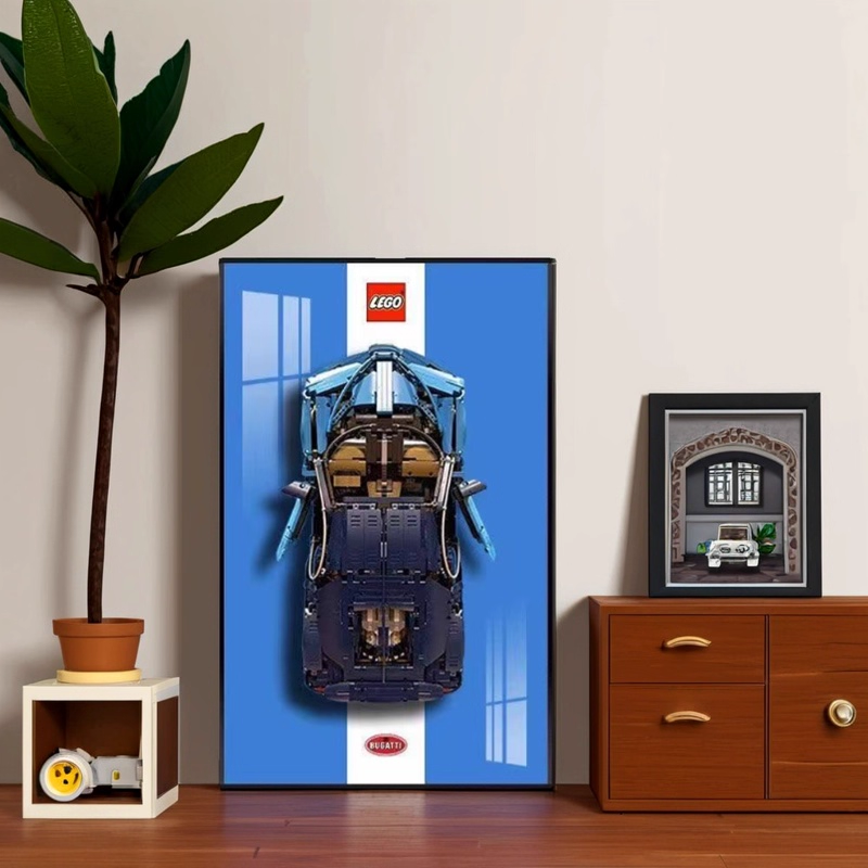 ( Included car)Wall-Mounted Display Case for LEGO Technic 42083 Bugatti Chiron - Premium Azure Background Art Frame